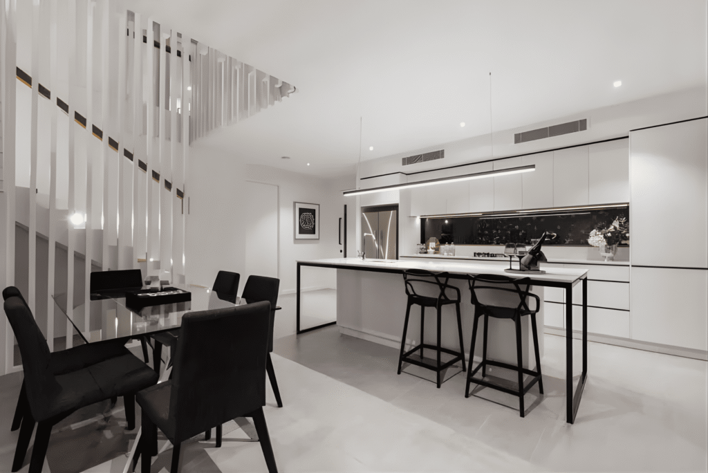 Tiesa: Montuojant įtempiamas lubas, prarandama minimaliai erdvės. Jei pasirenkate paprastą apšvietimą (liustrą), lubos nusileidžia vos 3–5 centimetrus. Tai vizualiai beveik nepastebimas pokytis, kurį visiškai atperka idealiai lygus paviršius. Didesnis aukštis (10–15 cm) prarandamas tik tuo atveju, jei norite montuoti sudėtingas ventiliacijos sistemas ar įleidžiamus šviestuvus su dideliais korpusais.
